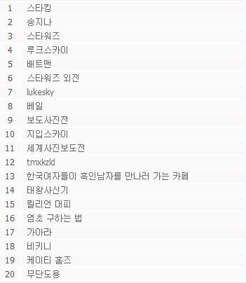 20위 안에 스타워즈 검색어가 겨우 두개라니 좌절….ㅠ.ㅠ